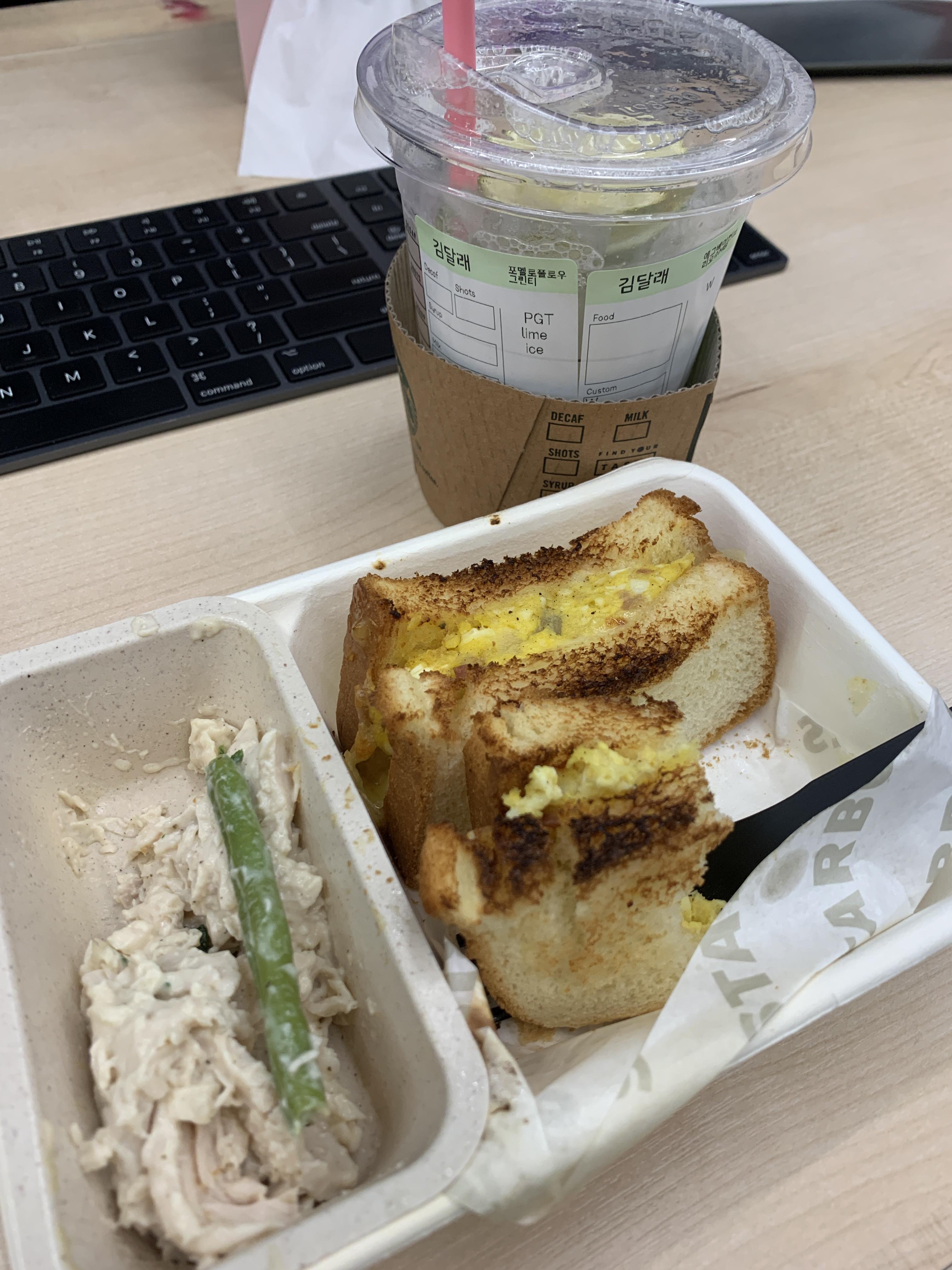 [스타벅스] 에그 베이컨 브리오슈 밀 박스 + 포멜로 플로우 그린티 아 운동하는 내내 밀박스가 계속 생각났따