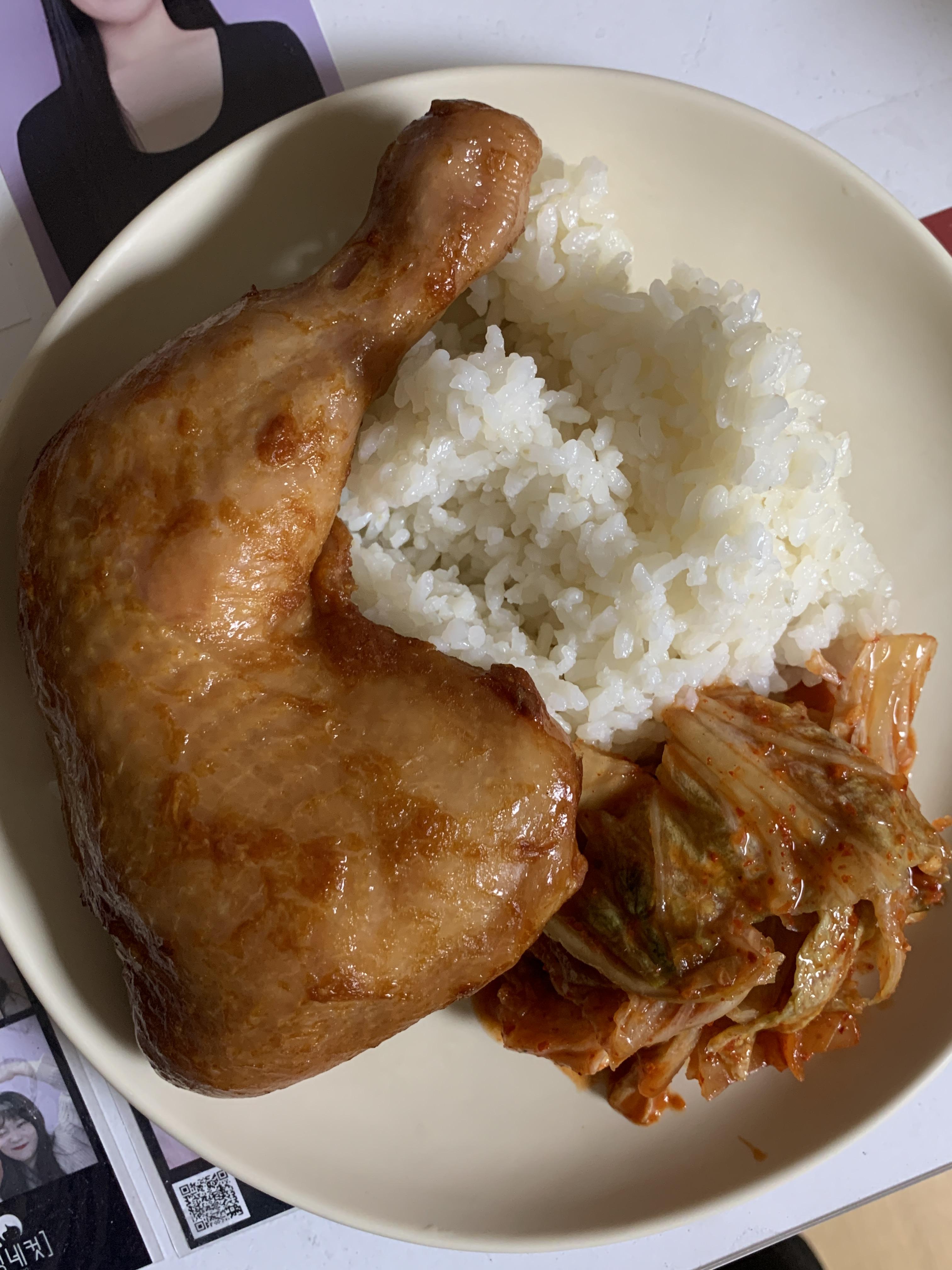 GS25 스모크 닭다리 + 밥 140g + 김치 오아 집에서 밥통 열어서 밥 꺼내먹어본 게 얼마만이지