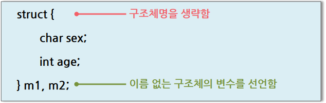 구조체를정의하면서변수를함께선언할때는태그명을생략할수있음 구조체 처리