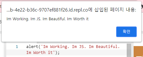 이제 우리는 경고메세지도 있습니다. JavaScript로 제일 처음한 작업입니다. 이걸 Hello world 라고 부릅니다. Hello world 언어 라고도 합니다. 경고메세지요.