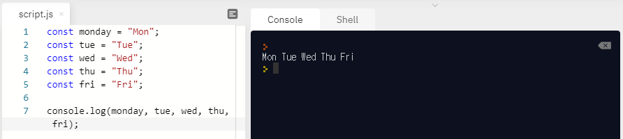 이렇게 변수를 선언 해주고... 자! 이제 여기서 누군가 여러분의 데이터 베이스에 있는 모든 요일을 보고 싶다고 하면, Awesome.😎 우린 개발자니까 아래 처럼 할 수 있겠죠.