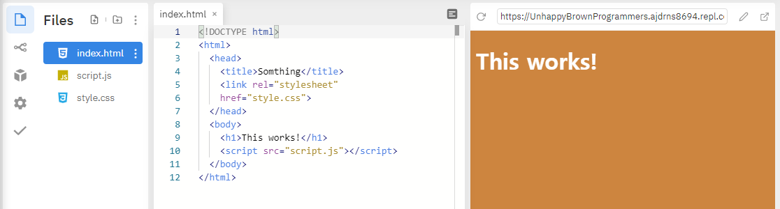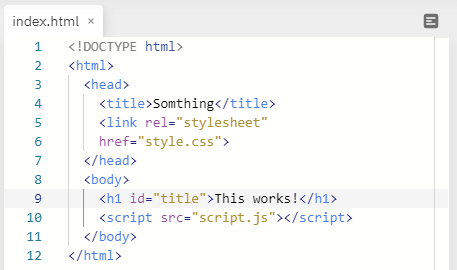 먼저 우리는 연습을 해볼거예요. 보통 어떻게 연습하냐면 This works가 써있는 것을 바꿔야하니까 h2에다가 title이라는 id를 줍니다. id는 그닥 좋아하지 않는데.. 평소엔 class만 써요. 나중에 어떻게 쓰는지 보여줄게요.