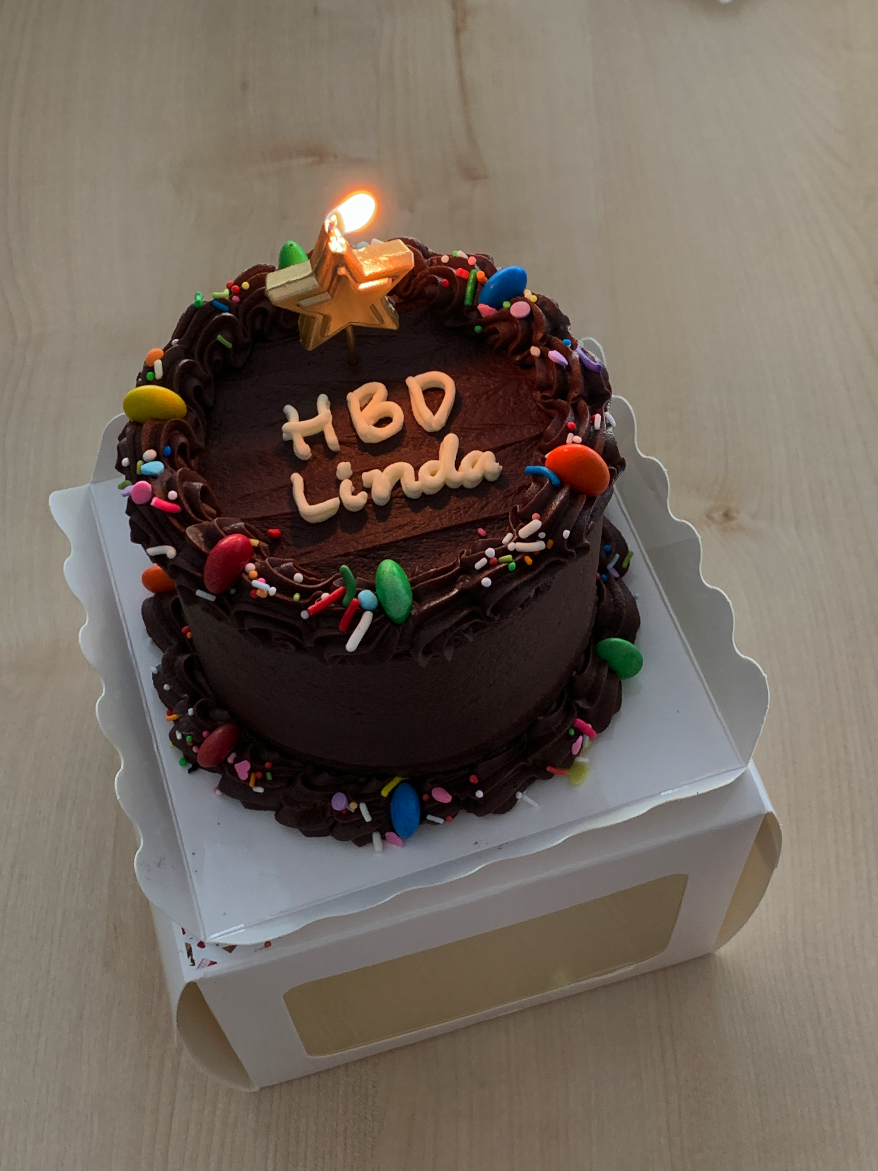 초코케이크 베라 스푼으로 두 번 + 맥반석 + 딸기우유 200ml 와~ ~ ~~ 그리고 오늘 Linda 생일~ ~ ~~