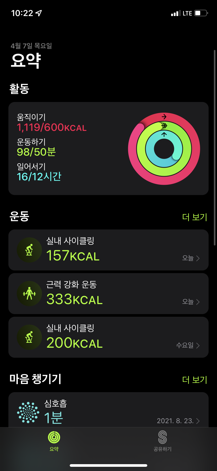 오운완 빵긋 ^_^ 힘겹게 눈뜨고 오운완 기록샷.. .