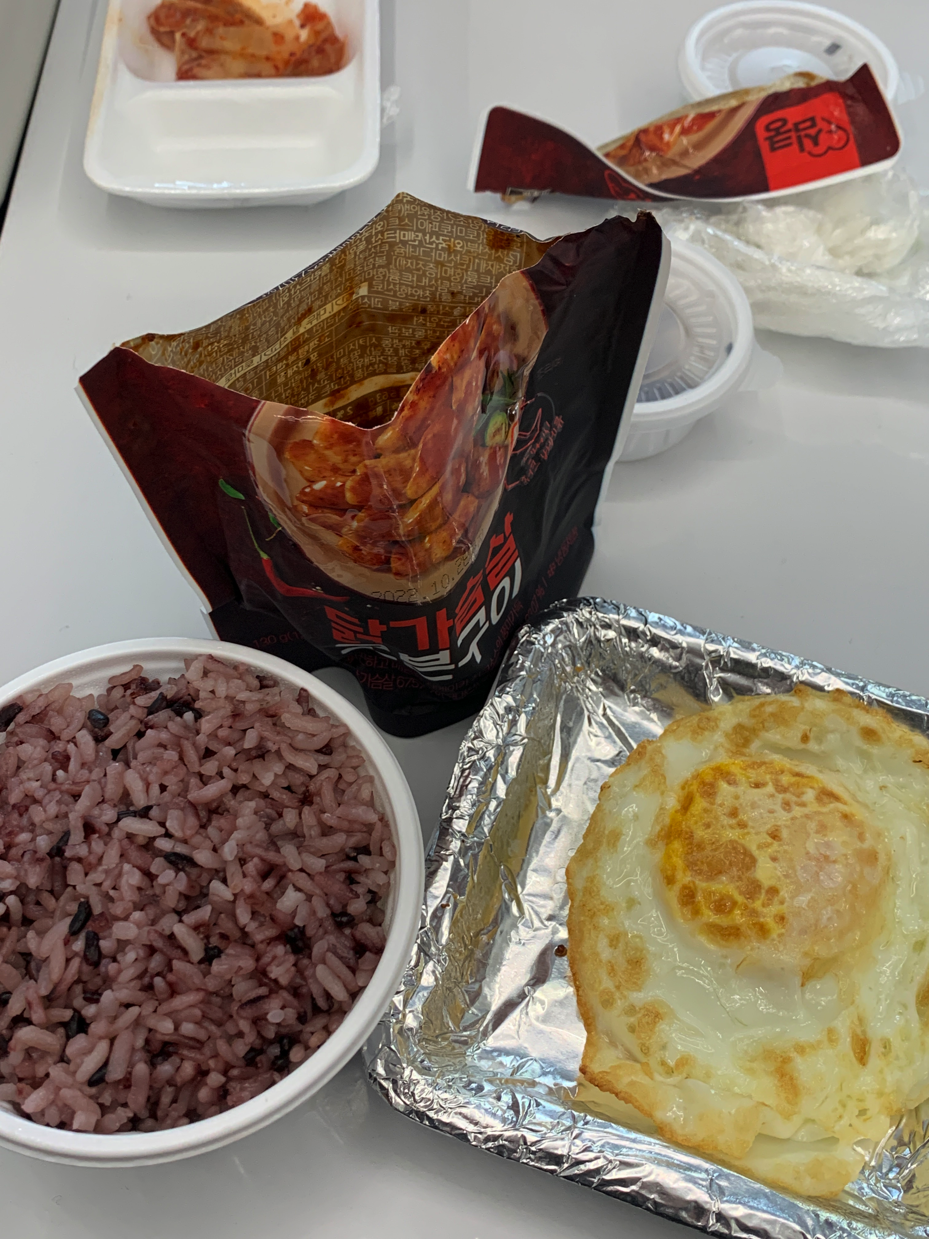 밥 반공기 + 꼬꼬빌 심쿵 오븐구이 닭가슴살 저크바베큐 + 계란후라이 오늘 자리배치 바꾸는 날이라고 이삿날 느낌으로다가 중식 시켰당