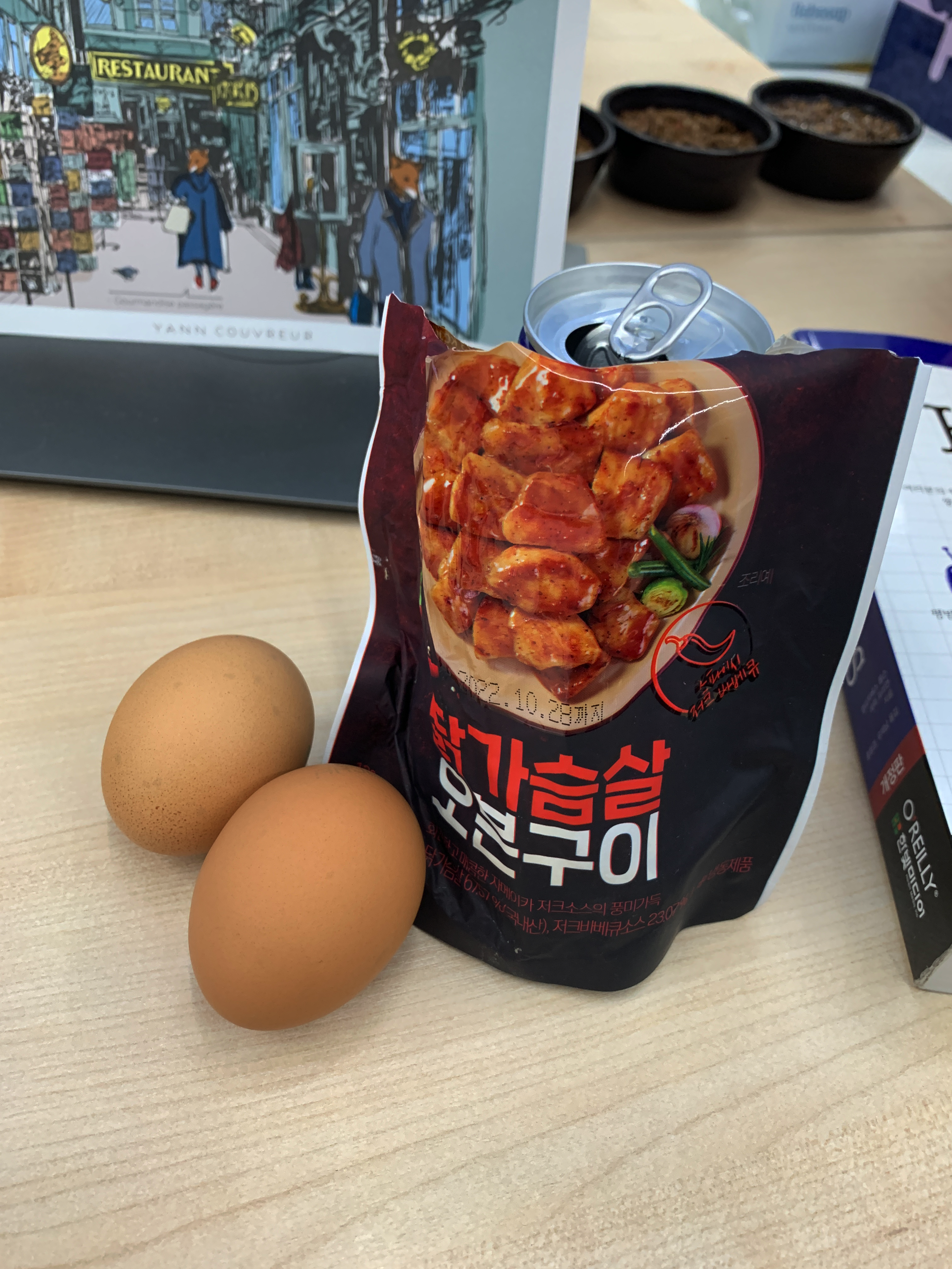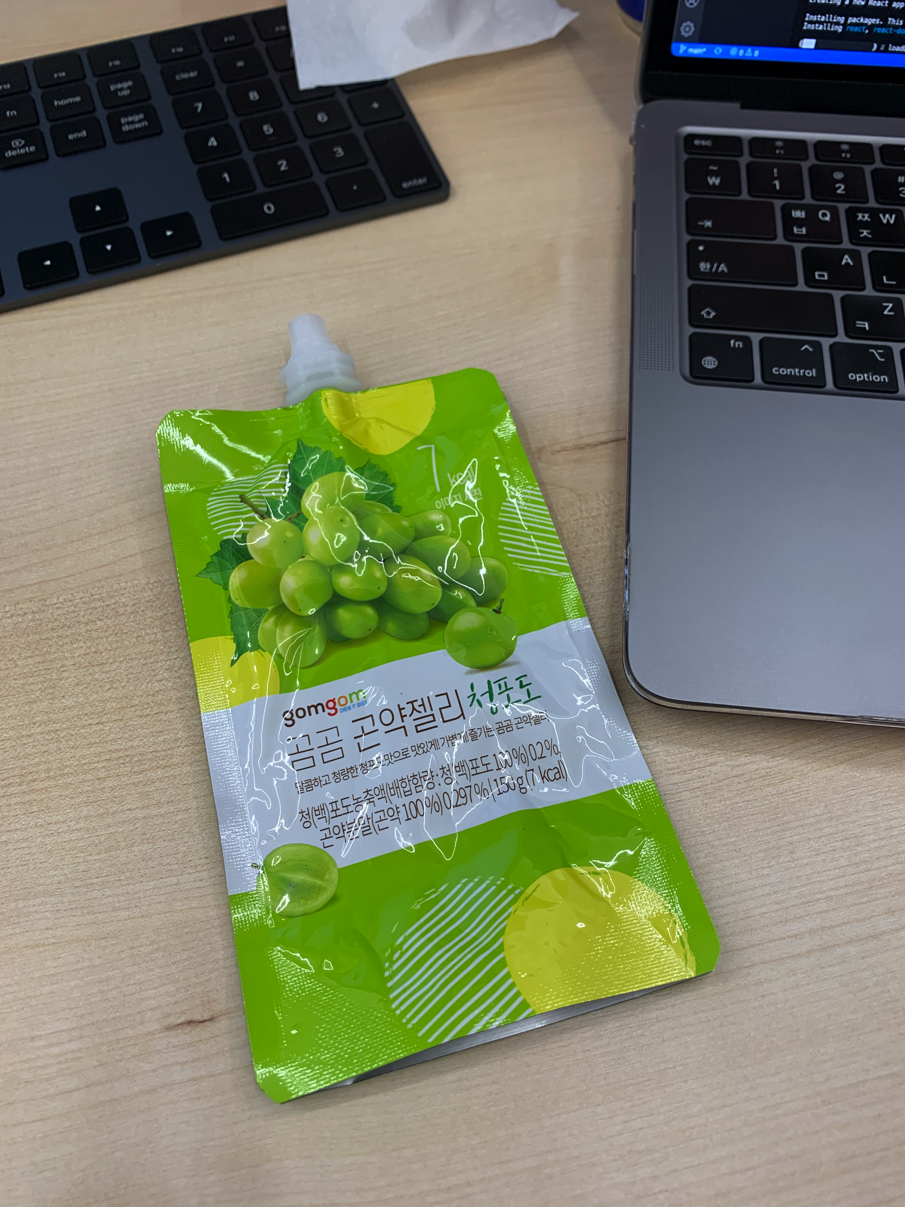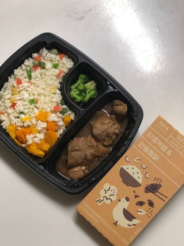 띵커바디 단호박밥&안동찜닭 + 꼬꼬빌 오븐구이 저크바베큐 + 곰곰 곤약젤리 청포도 점심은 이거 먹었는데 크로플에 빠져서 사진을 안찍었나부다
