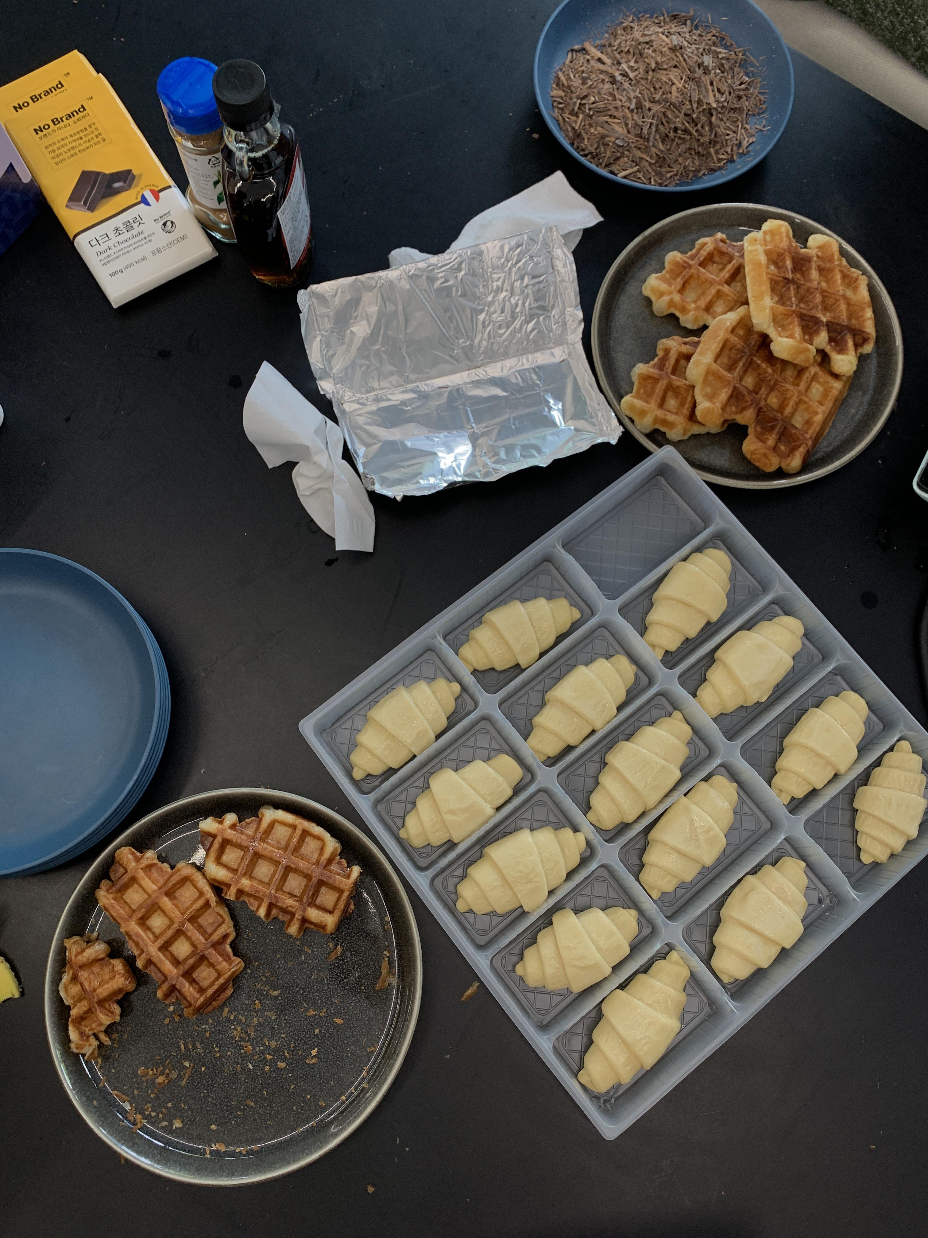 린매랑 아매가 열시미 크로플을 굽고있었당